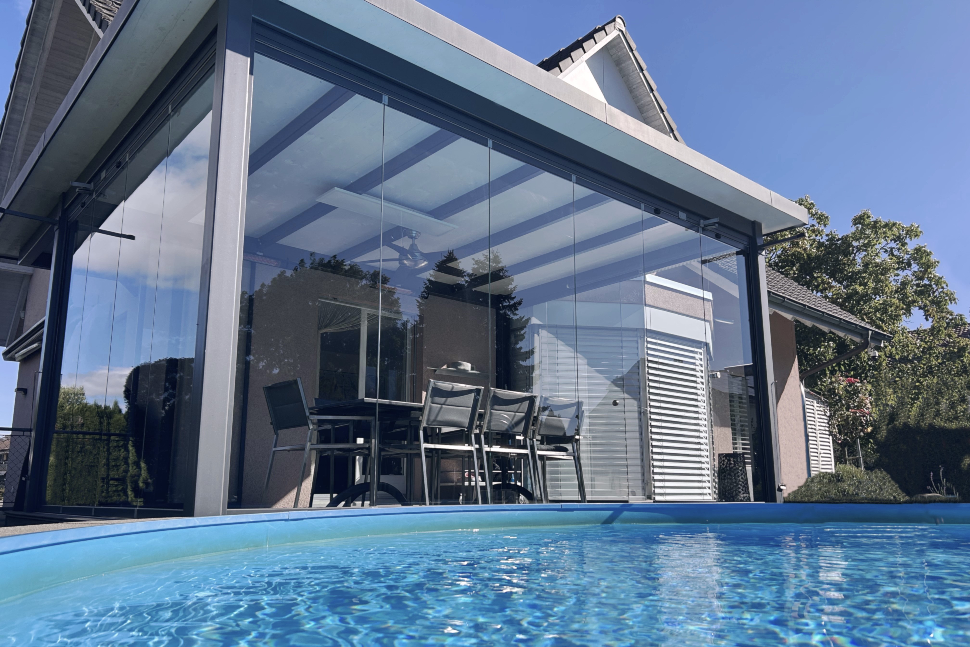 Entdecken Sie unsere massgeschneiderten Terrassenüberdachungen, die Ihrem Aussenbereich zusätzlichen Komfort und Schutz bieten. Unsere hochwertigen Verglasungen sorgen für eine optimale Lichtdurchlässigkeit und schaffen eine angenehme Atmosphäre, in der Sie Ihre Terrasse oder Ihren Balkon das ganze Jahr über geniessen können.