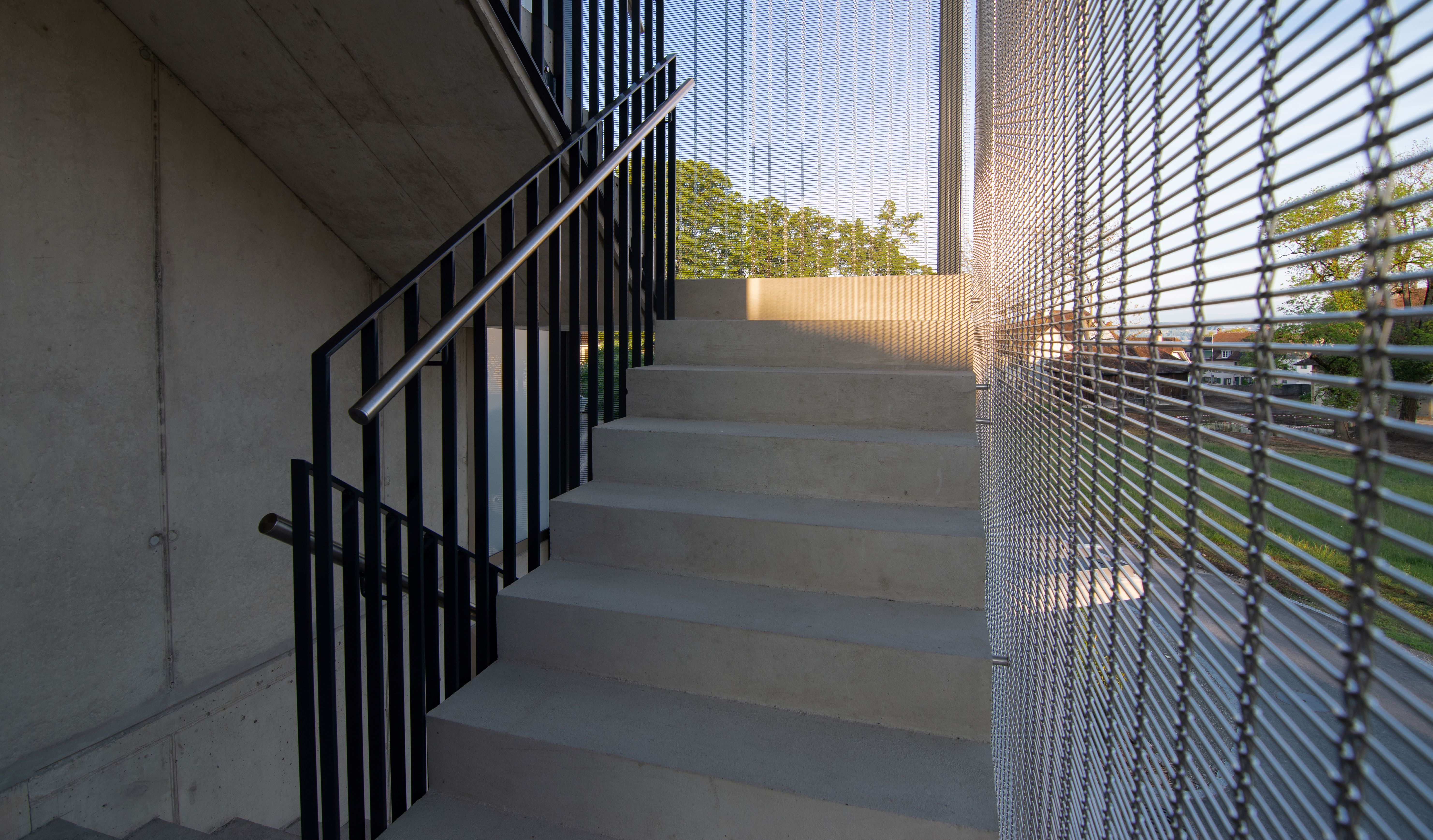 • Architekturgewebe in Edelstahl im Treppenhaus